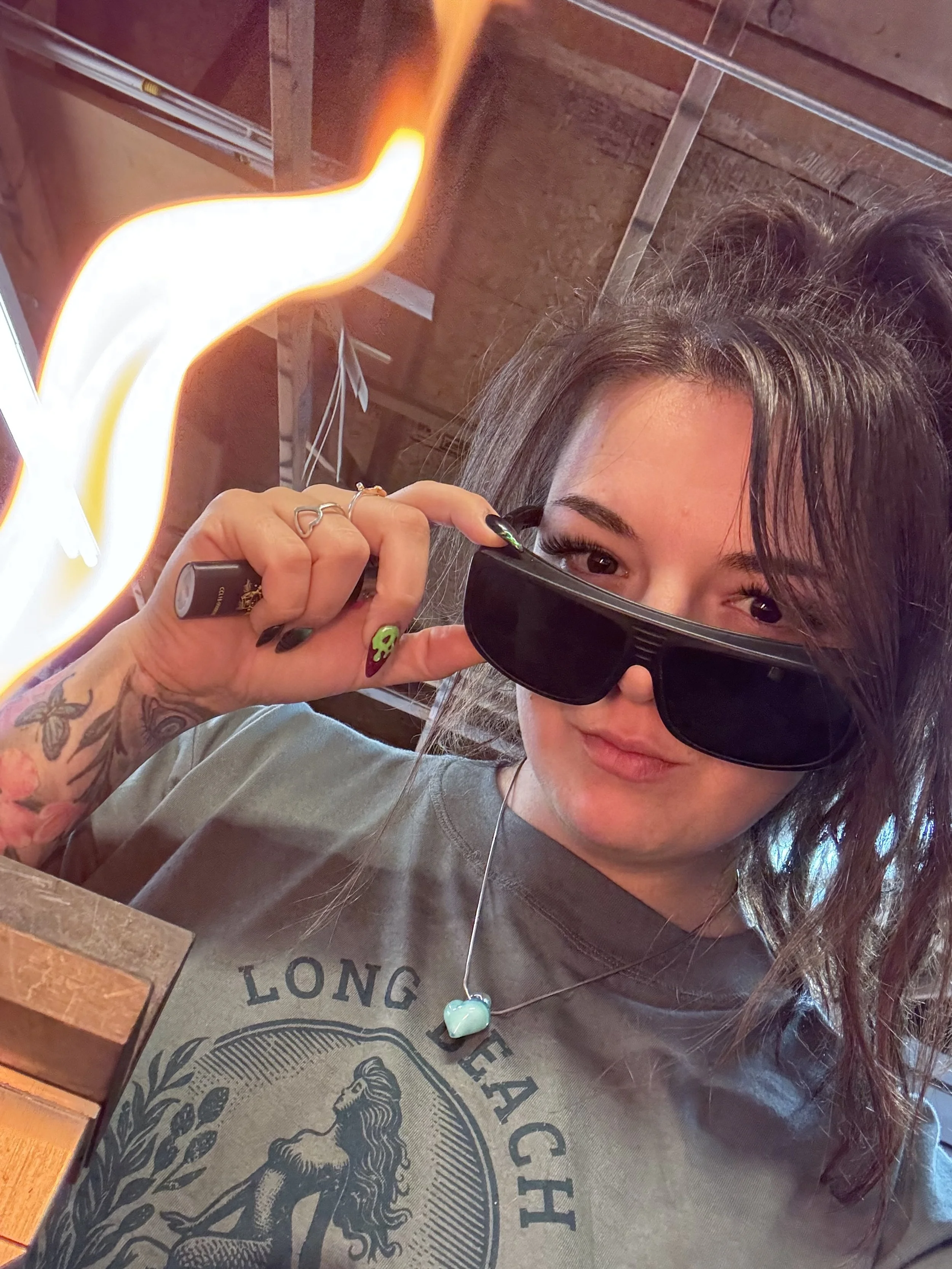 Outside of the torch, I love experimenting with new mediums, designing custom projects, caring for my very full household of pets, and staying connected with the incredible network of artists, collectors, and supporters who make this journey so meaningful.